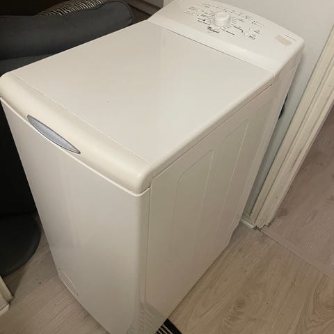 Whirlpool päältä täytettävä pesukone, valkoinen väri. Pesukone on suunniteltu pyykinpesuun ja siinä on käyttöliittymä ja ohjauspaneeli päällä. Sopii kotitalouskäyttöön. 6.5kg. sain isältäni hänen pesukoneensa joka on isompi, joten kyseiselle ei enään käyttöä.