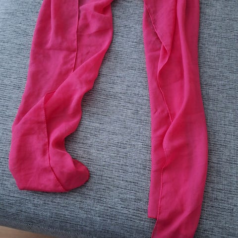 Uudenveroinen (Käyttämätön) aniliininpunainen huivi, talvinen mutta ohutta kangasta. Materiaalista ei merkintää. Pituus: noin 180 cm Leveys: noin 66 cm