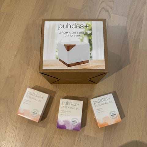 Myydään Ruohonjuuresta 2020 ostettu sähköllä toimiva Puhdas+ Ultrasonic Aroma Diffuser 400 ml - Puunväri tuoksudiffuuseri/ilmankostutin. Tämän kanssa voi käyttää diffuuseriin tarkoitettuja eteerisiä öljyjä. Toimii moitteettomasti. Ovh. 80€