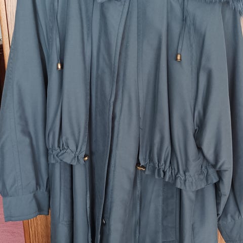 Lämmin takki, jossa huppu. Huppu on vetoketju kiinnityksellä, eli sen saa tarpeen vaatiessa pois.