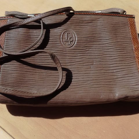 Aivan ihastuttava nahkainen musta käsilaukku LS logolla, napsukiinnitys,