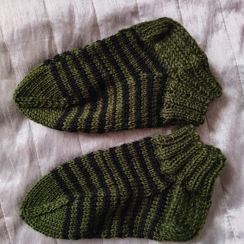 Käyttämättömät villasukat arviolta 34-kokoiselle. En ole itse neulonut sukkia, joten en mene ihan takuuseen onko juuri tämä koko.