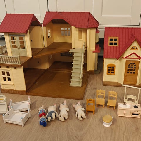Sylvanian Families talot, kolme taloa. Siistit leikityt, en osaa sanoa onko kaikki osat tallella.