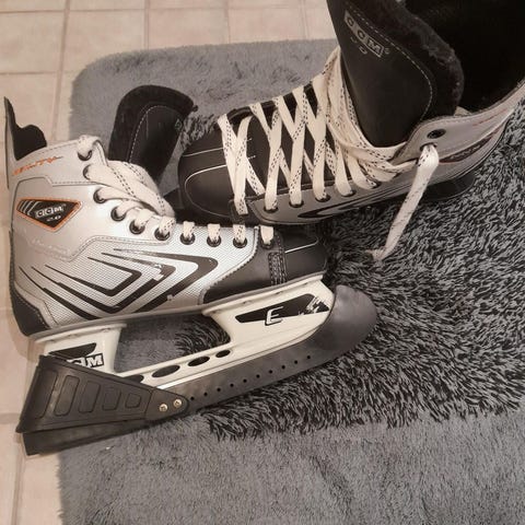 CCM jääkiekko luistimet, koko 43. Luistimissa musta väri ja valkoinen terä.