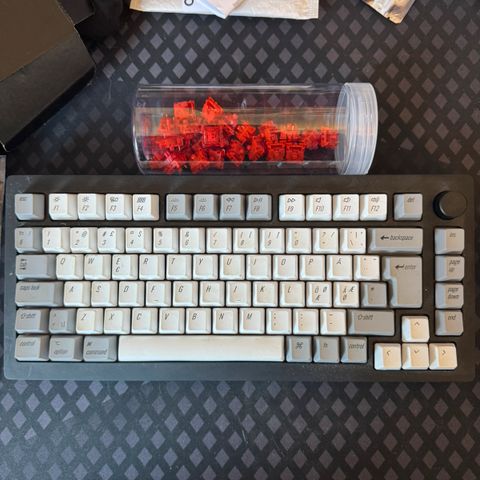 Tape mod on the back, GMK QMX Stabilizers. Most of original packaging and accessories are still intact.