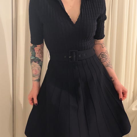 Käyttämätön Ted Baker neulemekko koko 4(40). Väri meleerattu pelleva. Villaa 76% ja polyamidi 24%. Pituus 123cm, kai-kai 50cm (joustaa). Vasemmassa sivussa 40cm halkio. Nouto Länsikeskus/ MP+posti/ toridiili