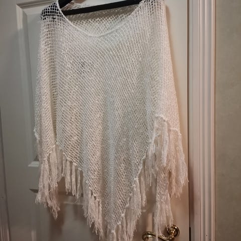 Myyn naisten vihreän ponchon. Mukana neuloksessa myös hieman vihreää glitterilankaa. Erittäin vähän käytetty, kuin uusi. Malliltaan ei iso poncho, joka estäisi käsien liikettä vaan lyhyempi noin napaan asti ylettyvä.