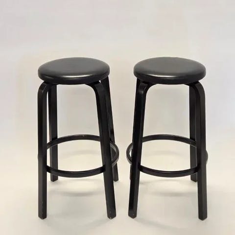 Myydään ensisijaisesti pakettina, mutta myös yksittäisiä jakkaroita voi kysellä. Hinta vaihtelee kunnosta riippuen 100-150€/kpl. Ilmoituksen hinta kaikille yhteensä.