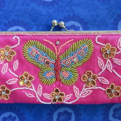 Musta kukkakuvioinen iltalaukku napsulukolla 10 cm x 19 cm
