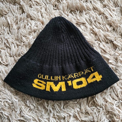 Myydään kuvan harmaa pipo, Kärppien logolla. Koko one size, joustavaa materiaalia. Käytetty pari kertaa, uudenveroinen. Hinta 3 euroa.