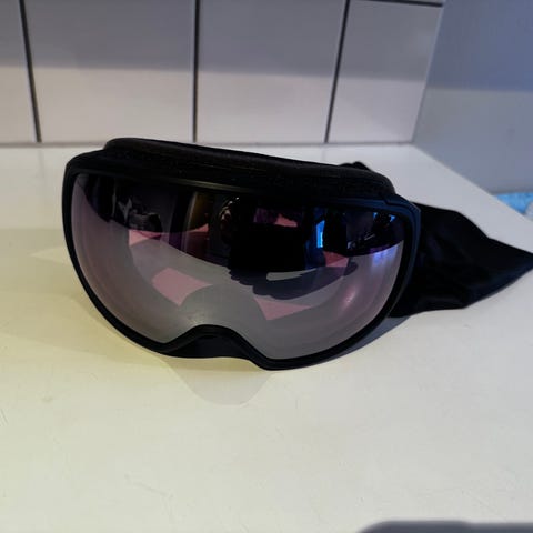 Myynnissä vähäiseen käyttöön jääneet laskettelulasit. Etulinssissä pieni kiiltopinta, takalinssi pimentävä.