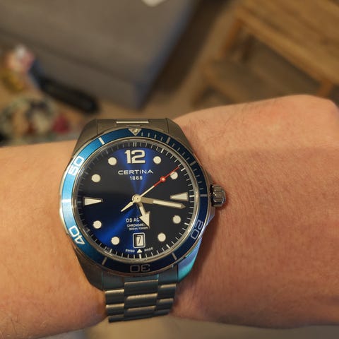 Täysin käyttämätön laadukas Certina sukelluskello miehille safiirinsinisenä.