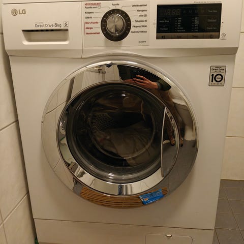 LG Edestä täytettävä pesukone, 7 kg kapasiteetti. Käytetty vain muutamia kertoja. Ongelmana että pitää 60 C pesun kokoajan päällä koska ilmeisesti napissa vikaa. Ei tutkittu tarkemmin.