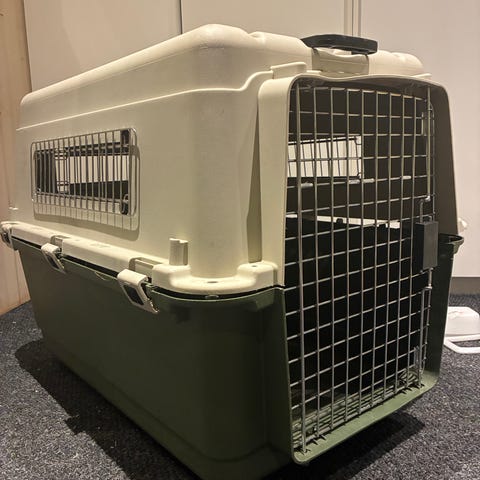 Todella siisti ja uuden veroinen kokoontaitettava koiran häkki. Mitat n 50×55×70 cm. Todella helppo koota ja taittaa kasaan, ja koottuna on erittäin tukeva. Sisällä hyvin paikoillaan pysyvä ja siisti pehmuste, jolla koiran on mukava matkustaa.