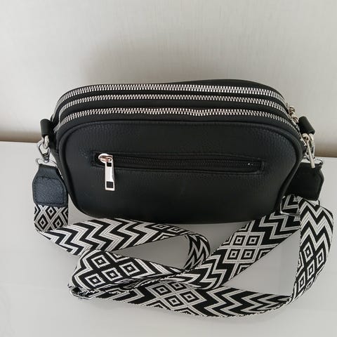 Pohjassa on tukeva pahvi ja olkahihna on säädettävä.
