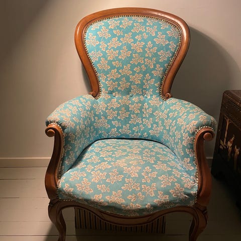 Hakusanat: vintage, istuin, sisustus, nojatuoli, nojatuolit, lepotuoli, käsinojat, funkkis, huonekalu, huonekalut, kukkakuvio, kangasverhoilu, raidallinen, Tuoli, käytetyt huonekalut, tuolit, vintage huonekalut, puu