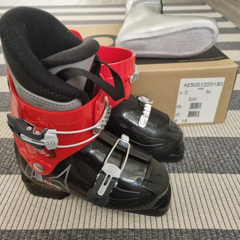Laskettelumonot: Atomic AJ 20. Pohjan ulkomitta 237mm. Koko joko 18 tai 19, laatikossa lukee 18, mutta monoista merkintä ei erotu kunnolla. Pohjallisen pituus n. 18,5 cm. Laskupäiviä max 20.