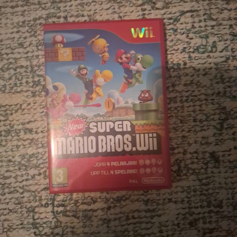 Nintendo New Super Mario Bros. Wii peli Nintendo Wii -pelikonsolille. Peli sisältää useita tasoja ja pelattavia hahmoja. Soveltuu viihteeksi eri-ikäisille pelaajille.