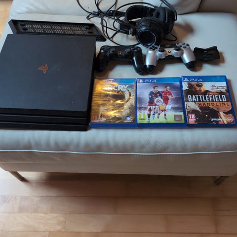 PS 4 Pro SSD, 2 ohjainta ja pelejä