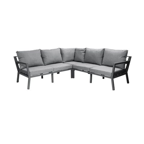 Suvituuli-avokulmasohvan rungon materiaali on helppohoitoista ja säänkestävää alumiinia. Istumamukavat kangasverhoillut istuin- ja selkänojapehmusteet sisältyvät hintaan.