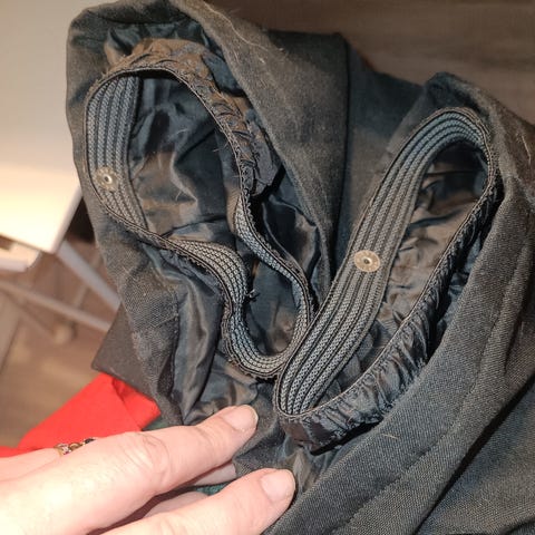 Housun polvessa on pieni reikä, se näkyy kuvassa, muuten housut ovat hyvässä kunnossa.