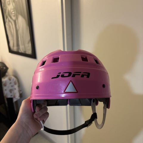 Myydään sininen JOFA merkkinen jääkiekkokypärä edullisesti. Säädettävä pään koko 50 cm aina 57 cm saakka. Hyvä kypärä, pientä käytöstä johtunutta kulumaa.