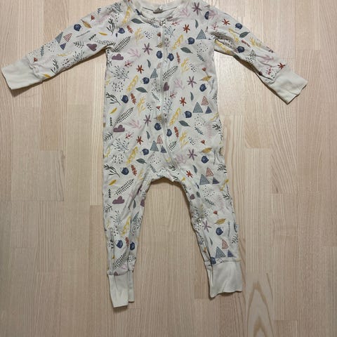 Raidallinen pyjama, koko 86/92, rinnassa auton kuva.