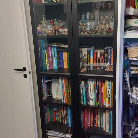 Kaksi Billy-hyllyn lasivitriiniovea. Ehjät ja siistit. Ovien sisäpuolella käännettävä valko/musta täytelevy. Hopeinen kehys. Hopeiset vetimet. Saranat ja ruuvit. Nouto. Ikean hinta 40€/kpl. Nyt molemmat yhtä. 40€