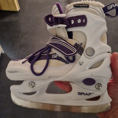 Tarpeettomaksi jääneet Graf harjoitusluistimet seuraavalle käyttäjälle. Luistimet ovat käyttövalmiit, terät kohtuullisen terävät.