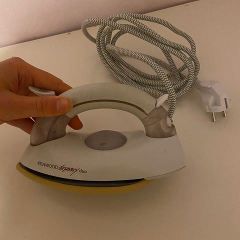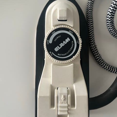 Elram matkasilitysrauta, valkoinen. Mukana on säilytyspussi.