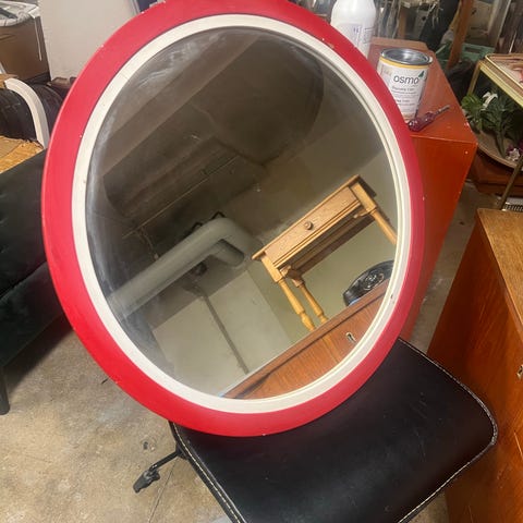 Myydään upea vintagepeili samettikehyksellä joka on upeaa punaista samettia. Peilillä on ikää reilut 70 vuotta joten kunto on sen mukainen, ks. kuvat. Ripustus on asiallinen ja samettikehys hyvässä kunnossa.