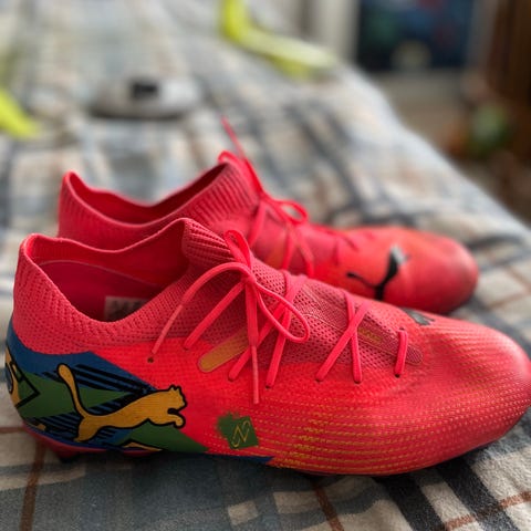 Puma Future Z 1.1 FG/AG jalkapallokengät harmaalla värillä. Kenkien pohjat on suunniteltu kiinteälle ja keinotekoiselle nurmelle. Kenkien materiaali ja rakenne tukevat jalkapallon pelaamista ja tarjoavat hyvän istuvuuden.