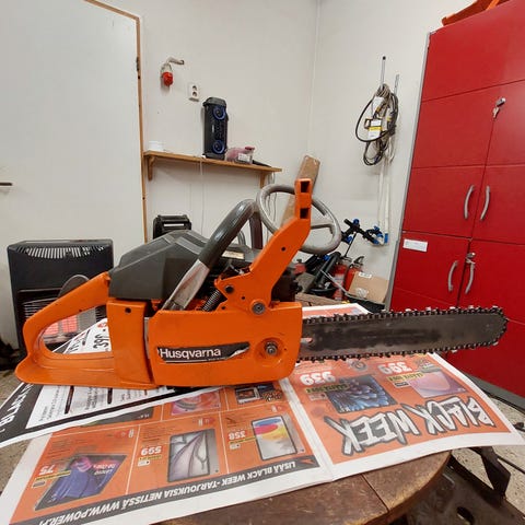 Moottorisaha Husqvarna 40, lähtee käyntiin mutta sammuu hyvä ketju ja uusi laippa