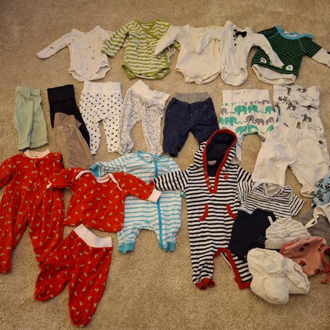 Kuvan mukaiset vaatteet koossa 50-56. Pääasiassa hm ja lindex, yksi popin setti body ja housut ja finlaysonin haalari. Osa todella vähän käytettyjä, osa enemmän käytettyjä, mutta kaikki kuitenkin ihan käyttökelpoisia. Oikeassa reunassa unihaalarit, keskellä bodyt, alhaalla housut ja vasemmalla paksummat haalarit. Vain nouto Hämeenlinnasta.