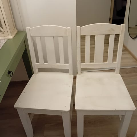 Myynnissä puiset ruokapöydän tuolit, 4kpl. Jaloissa virkatut pehmustetassut.
