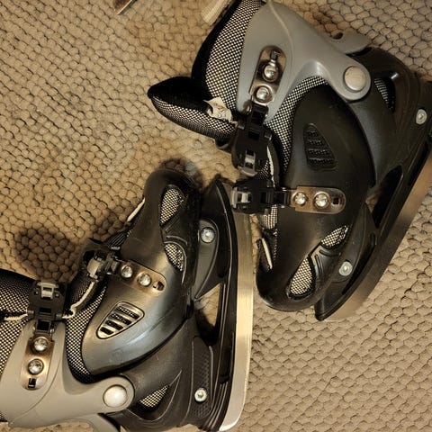 Myydään hyväkuntoiset lasten harjoitusluistimet, säädettävä koko 30-33 välillä.