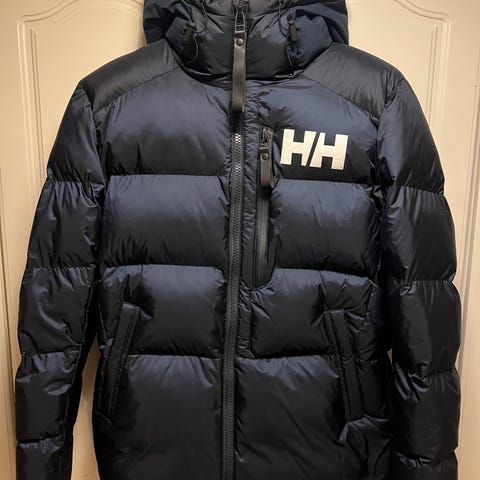 Tummansininen Helly Hansen -parkatakki irrotettavalla hupun karvareunuksella. Koko M, hyvin mahtuu vaatetta alle 173-senttiselle normaalikokoiselle miehelle. Kuvissa näkyy käytön tuomaa kulumaa, mutta takki on ehjä ja muuten hyväkuntoinen.