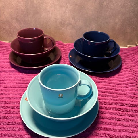 - 6 kpl pieniä mukeja (halkaisija 7 cm, korkeus 6 cm)