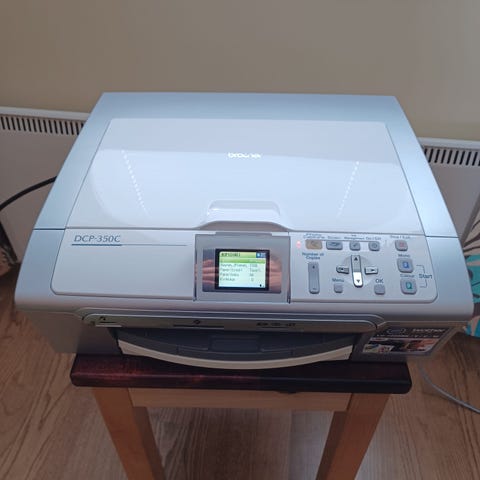 Brother DCP-9020CDW monitoimiväritulostin, jossa on skanneri ja kosketusnäyttö. Laite tukee värillistä tulostusta ja skannausta.