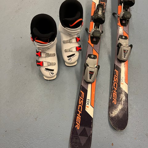 Lasten laskettelusukset 90cm ja laskettelumonot noin koko 28