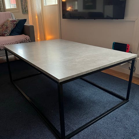 Kaunis tammiviiluinen sohvapöytä. Jalat mustat. Pöydän pinta moitteeton.