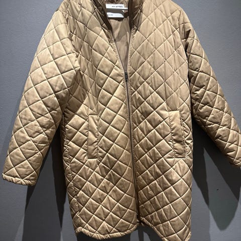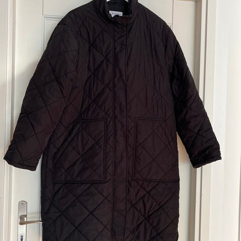 Harvakseltaan muiden takkien ohessa käytetty puolipitkä tikkitakki. Kunnossa ei erityistä mainittavaa, mutta pieniä käytönjälkiä voi löytyä. Vetoketjukiinnitys.