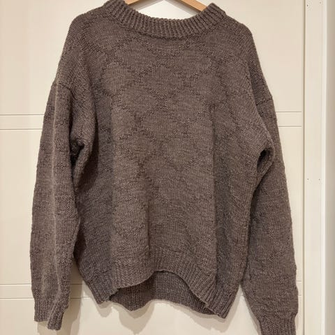 Villapaita villa neule neulepaita ruskea vaaleanruskea mid brown wool sweater knit knitwear v neck miesten unisex
