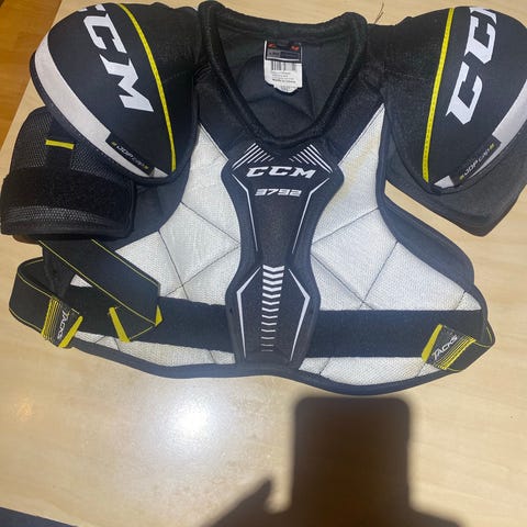 Juniorikoon CCM alasuojus ja kahdet niihin sopivat sukat. koko S/M. Toiset sukat on käytetty ja toiset on ihan uudet/käyttämättömät. Varusteet mustat väritykseltään.