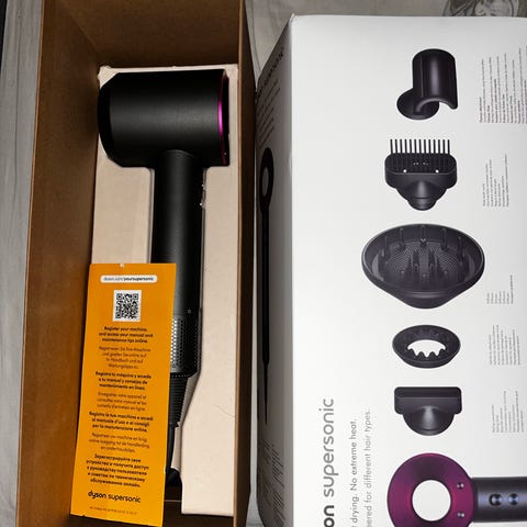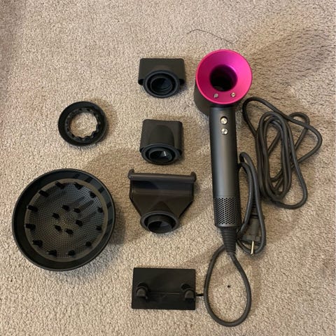 Dyson Supersonic hiustenkuivaaja harmaa ja pinkki väri.