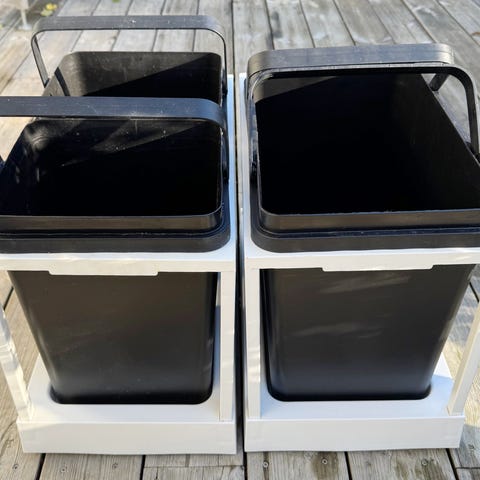Kaksi käytettyä suomalaista jätesankoa. Lanka ja muovi ja Mewe. Kumpikin kerralla.