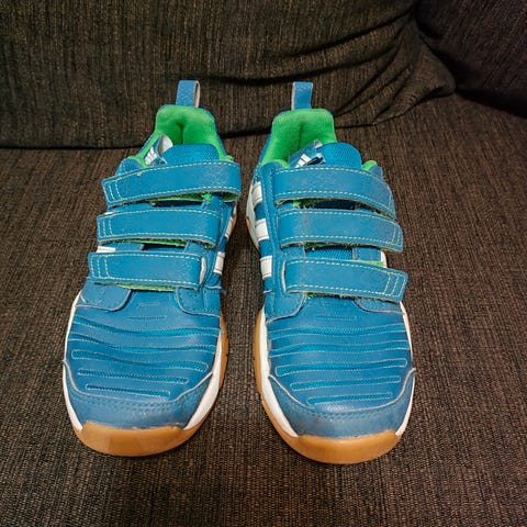Adidas Predator lasten sisäpelikengät, koko 34. Värit musta, sininen ja keltainen. Sopivat unisex-käyttöön. Valmistettu keinomateriaalista ja sopivat sisäpelikäyttöön. Vähän kulumaa näkyy pinnassa.