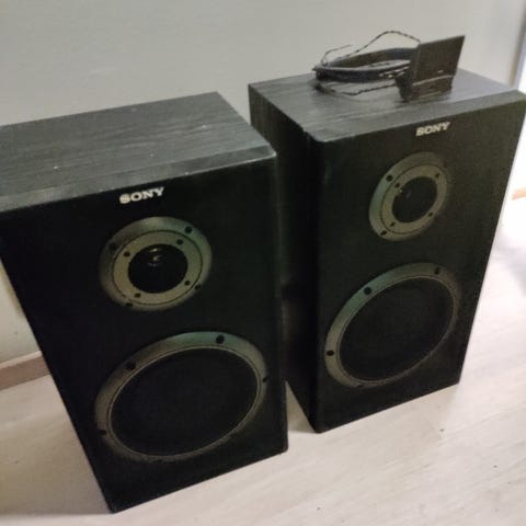 Sonyn Kotiteatterisarjan kaiuttimet. Bassorefleksi kaiutin 100w sekä 5 diskanttikaiutinta.Hopean värinen. Johtoliitäntä.