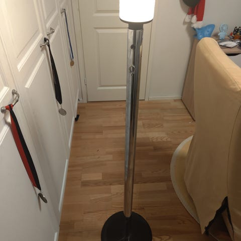 Hyväkuntoiset valaisimet yhdessä 80€,erikseen pieni 30€ ja korkea 50€.Ks. mitat ja yksityiskohdat kuvissa.Vakaat,siistit ja hyvin pidetyt.Vain nouto (Herttoniemi) ja maksu mobilepay/käteinen.
