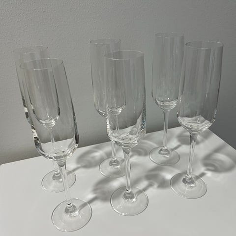 6 kpl sinijalkaista kuohuviinilasia